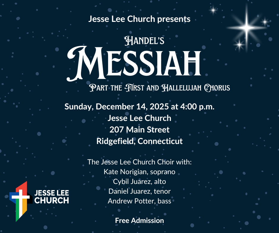 The Jesse Lee Church Choir will present Handel’s Messiah including the Christmas Section (Part I) and the Hallelujah Chorus. The performance, featuring instruments and soloists, will take place on Sunday, December 14, at 4:00 p.m. in the Sanctuary.